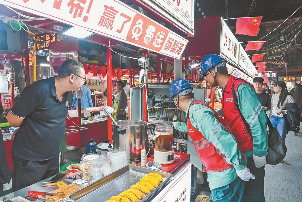 “附近商戶多,用電量大。風(fēng)機箱和變壓器是檢查重點,測溫不能出錯。”10月2日,山西太原供電公司青年突擊隊隊長毛輕揚在迎澤區(qū)鐘樓街開展用電檢查時,向隊員們強調(diào)注意事項。該公司團委組織青年突擊隊聯(lián)合黨員服務(wù)隊嚴密監(jiān)控景區(qū)、商業(yè)區(qū)等人員密集區(qū)域用電情況,及時發(fā)現(xiàn)并處置用電隱患。